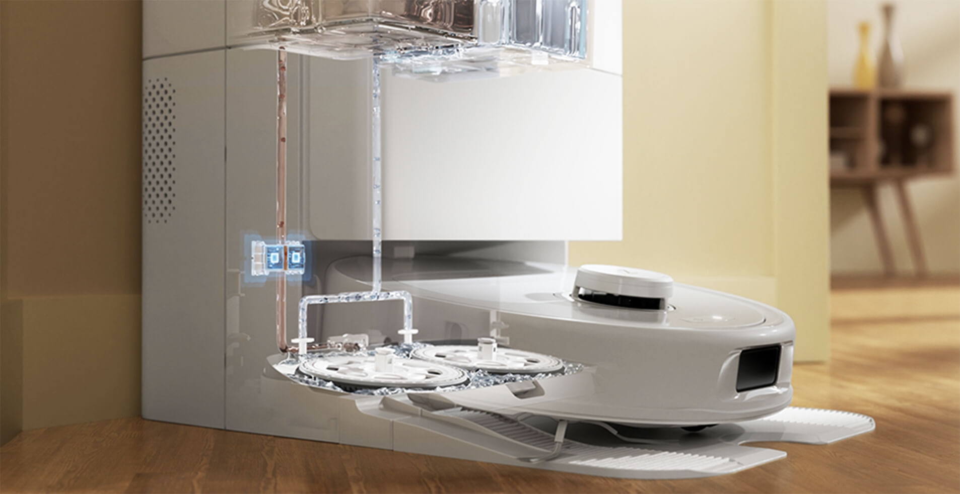 Автоматически наполняет резервуар для воды робота при необходимости.