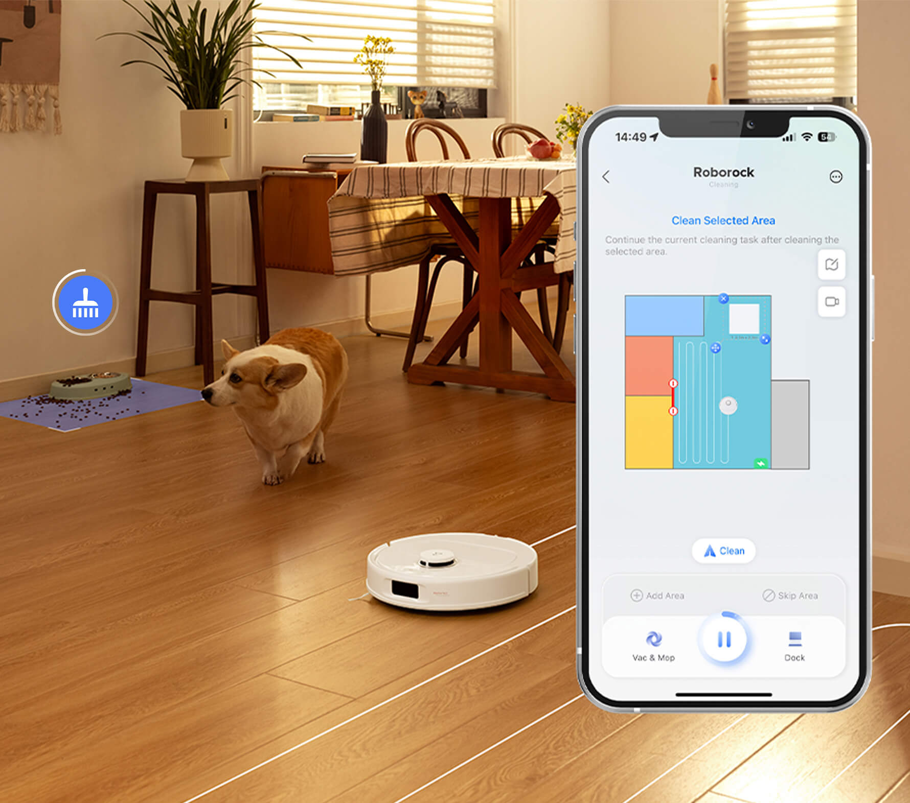 Позволяет роботу быстро справляться с неожиданными разливами или беспорядками, не нарушая регулярную процедуру уборки. Или же позволяет ему временно пропускать уборку определенных областей, где это необходимо.