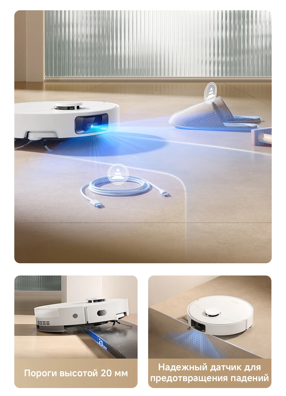 Оцените преимущества широких возможностей уборки и точного объезда препятствий. Поддержка настраиваемых запретных зон и технологии предотвращения падений гарантирует безопасное и эффективное выполнение уборки